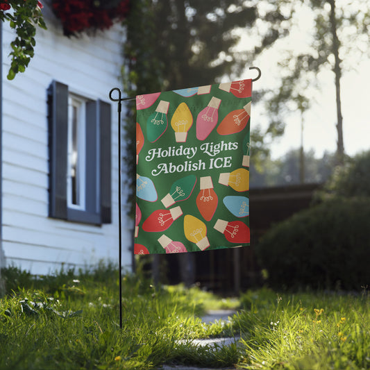 Holiday Lights And Abolish ICE Progressive Christmas Garden Flag