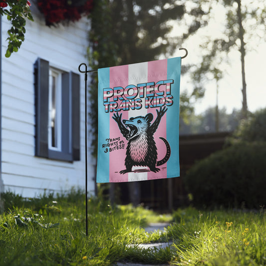“Protect Trans Kids” Trans Pride Possum Garden Flag