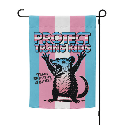 “Protect Trans Kids” Trans Pride Possum Garden Flag