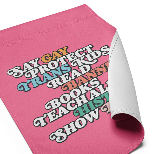 "Say Gay, Protect Trans Kids, Read Banned Books..." Progressive Garden Flag
