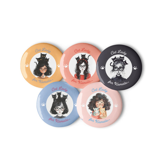 Cat Lady For Kamala Harris 2024 Set of Pin Buttons