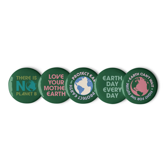 Earth Day | Eco Activist Climate Change Awareness Pin Buttons | Set of 5