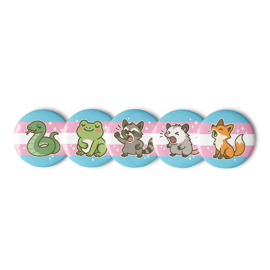 Cute Trans Rights Animals (Possum, Fox, Frog, Raccoon, Snake) | Trans Pride Pin Buttons | Set of 5