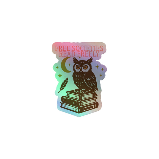 Free Societies Read Freely | Read Banned Books Progressive Owl Holographic Sticker