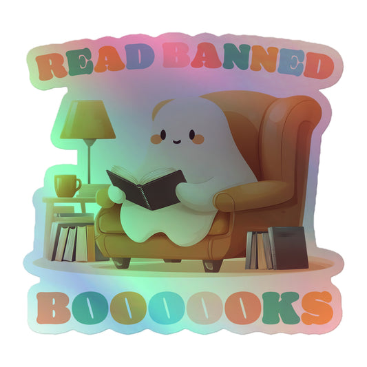Read Banned Boooooks Cute Ghost Reading Books Holographic Sticker