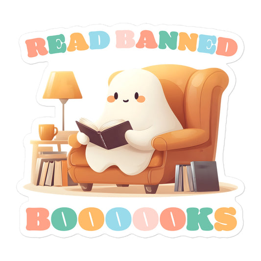 Read Banned Boooooks Cute Ghost Reading Books Bubble-Free Sticker