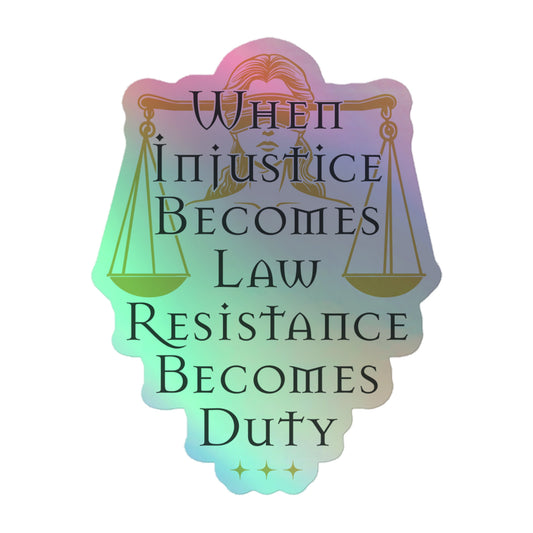 When Injustice Becomes Law Resistance Becomes Duty Lady Justice Social Justice Holographic Sticker