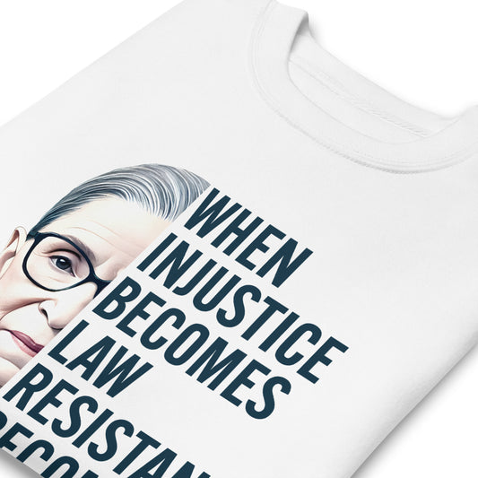 When Injustice Becomes Law Resistance Becomes Duty Ruth Activist Quote Unisex Premium Sweatshirt