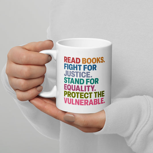 Read Books & Stand for Equality Social Justice White Glossy Mug
