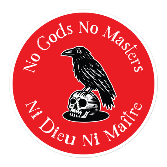 "No Gods No Masters / Ni Dieu Ni Maître" Raven Skull Sticker