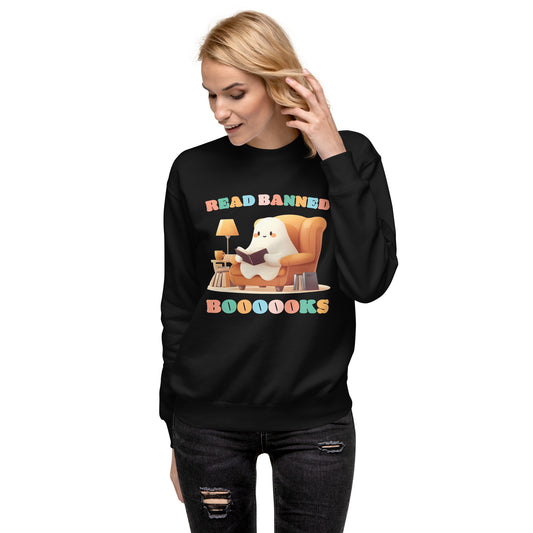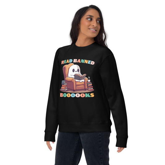 Read Banned Boooooks Cute Ghost Reading Books Unisex Premium Sweatshirt