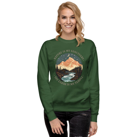 "Nature Is My Sanctuary. Earth Is My Temple." Unisex Premium Sweatshirt