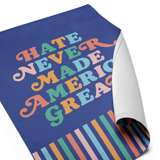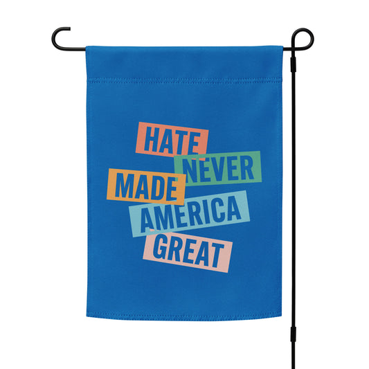 Hate Has No Home Here Progressive Garden Flag displayed in the front yard