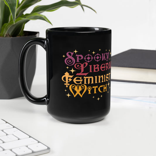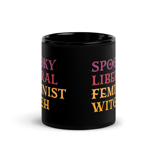 Spooky Liberal Feminist Witch Feminist Halloween Black Glossy Mug
