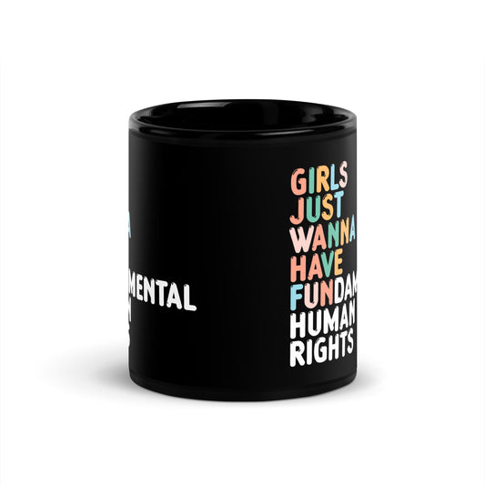 "Girls Just Wanna Have Fundamental Human Rights" Black Glossy Mug