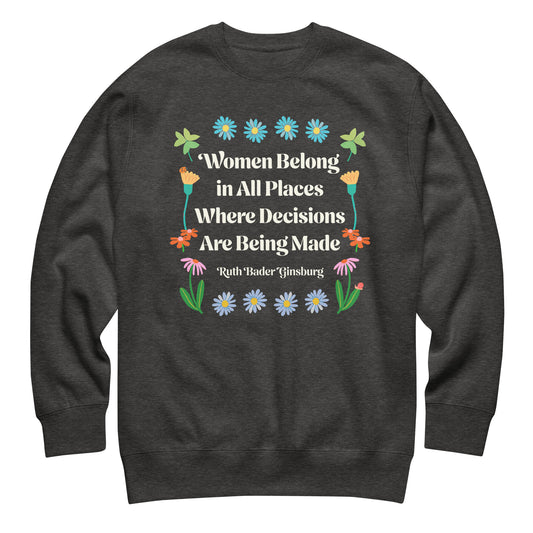 Women Belong In All Places Where Decisions Are Being Made RBG Social Justice Activist Unisex Premium Sweatshirt